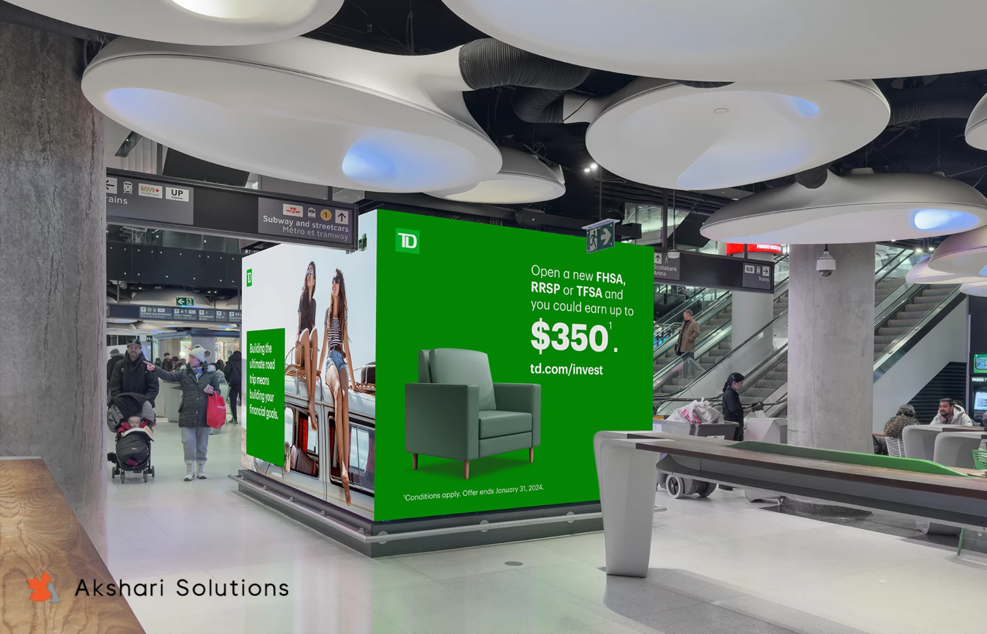 To captivate commuters in Union Station, we animated video assets as per the art director's concept for the TD F23 Goal Builder that were strategically displayed across high-traffic areas. These animations effectively communicated the campaign’s message, ensuring maximum visibility and engagement in one of the city's busiest transit hubs.